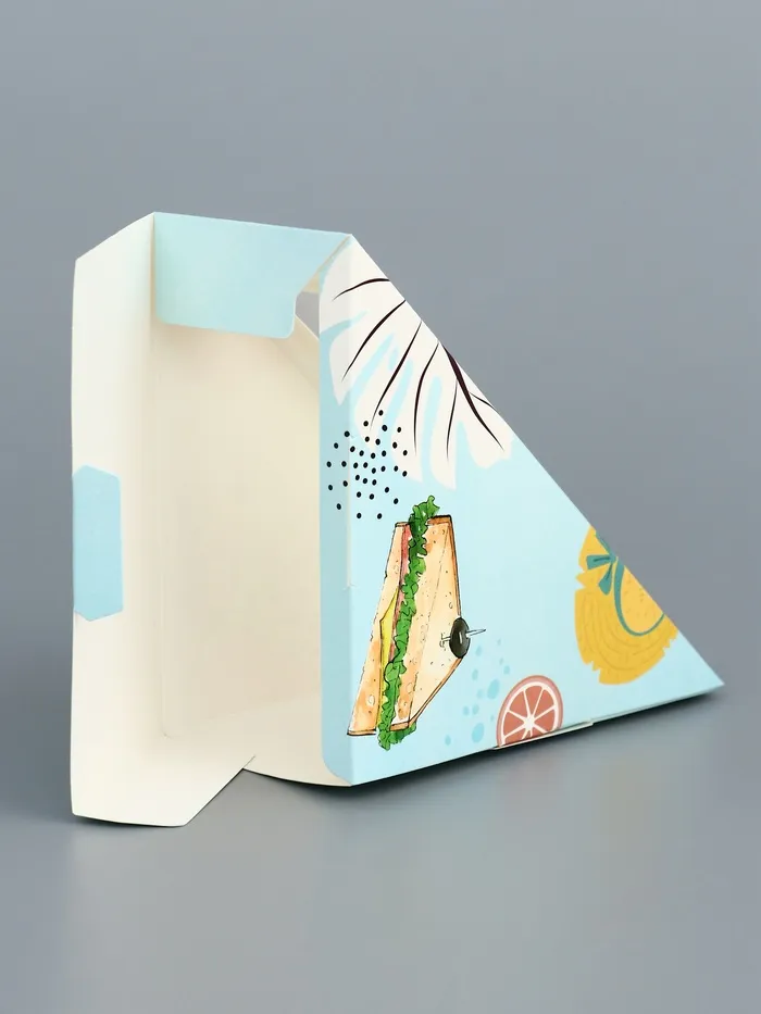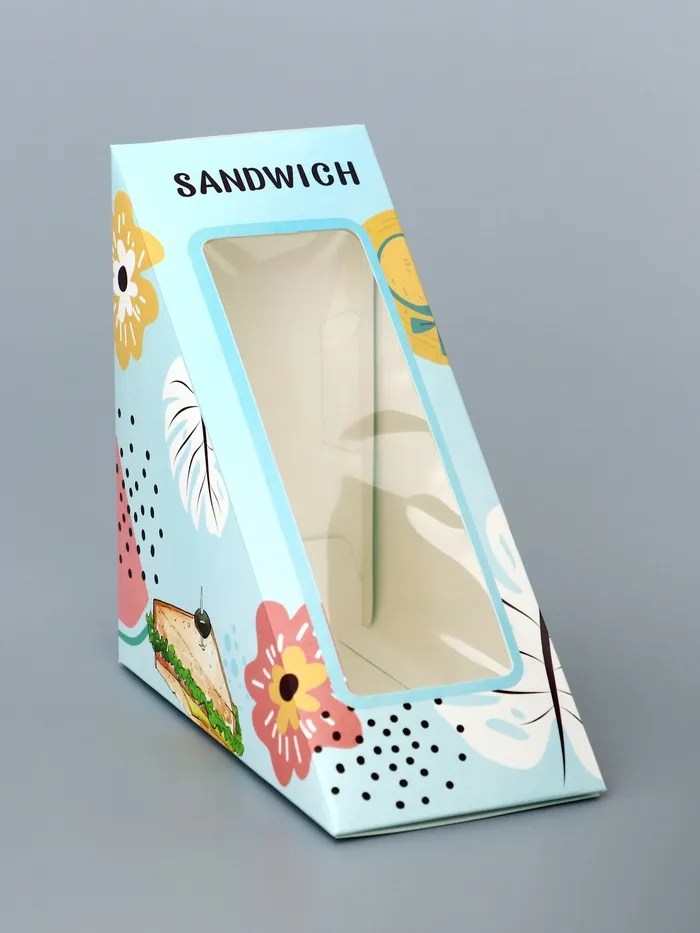 Эта упаковка для сэндвичей станет надежным и эффективным решением для кафе, ресторанов, столовых и супермаркетов, стремящихся предложить своим клиентам качественные и свежие продукты в удобной и безопасной упаковке.