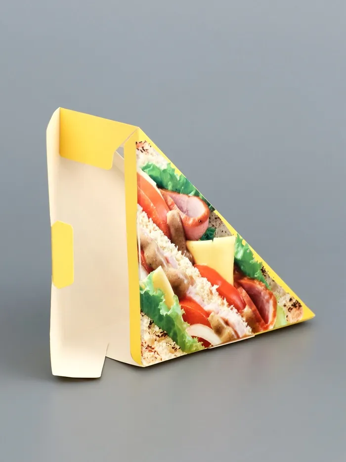 Эта упаковка для сэндвичей станет надежным и эффективным решением для кафе, ресторанов, столовых и супермаркетов, стремящихся предложить своим клиентам качественные и свежие продукты в удобной и безопасной упаковке.