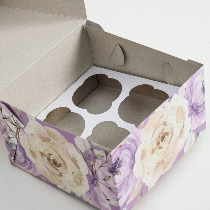 Упаковка на 4 капкейка "Пионы", без окна, 16 х 16 х 10 см — Характеристики
