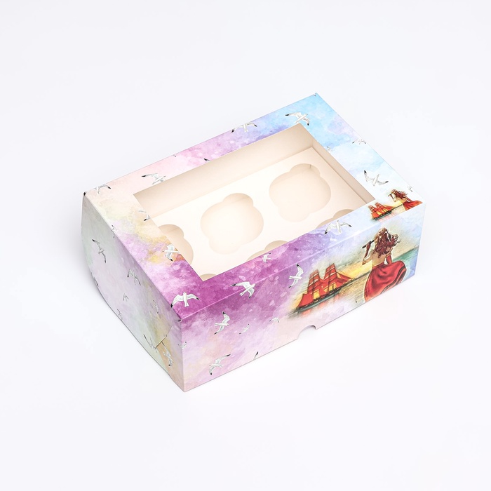Упаковка на 6 капкейков с окном, «Алые паруса», 25×17×10 см — Характеристики