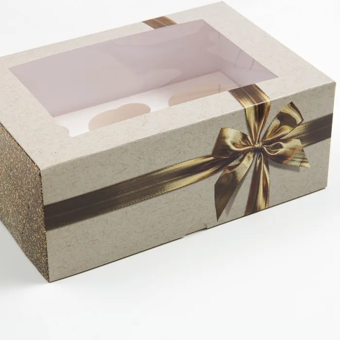 Упаковка на 6 капкейков "Золотой бант", 25 х 17 х 10 см — Характеристики