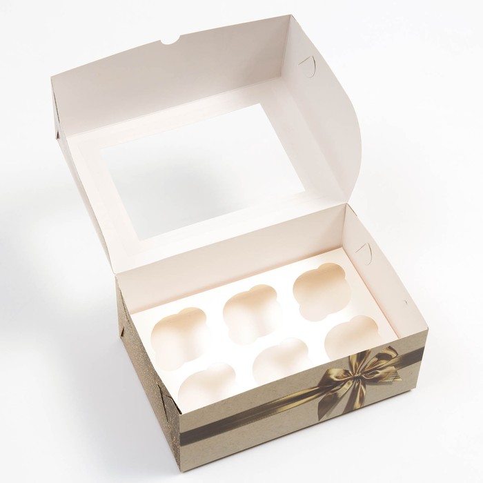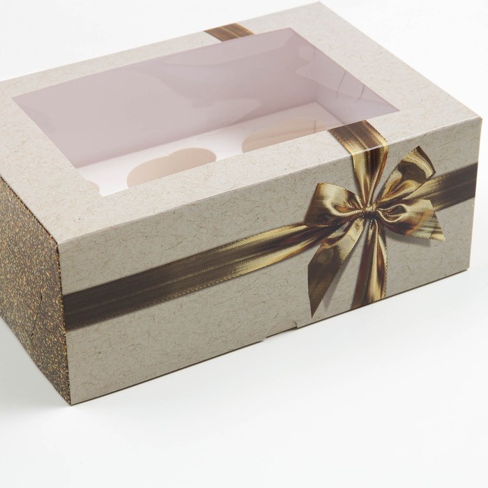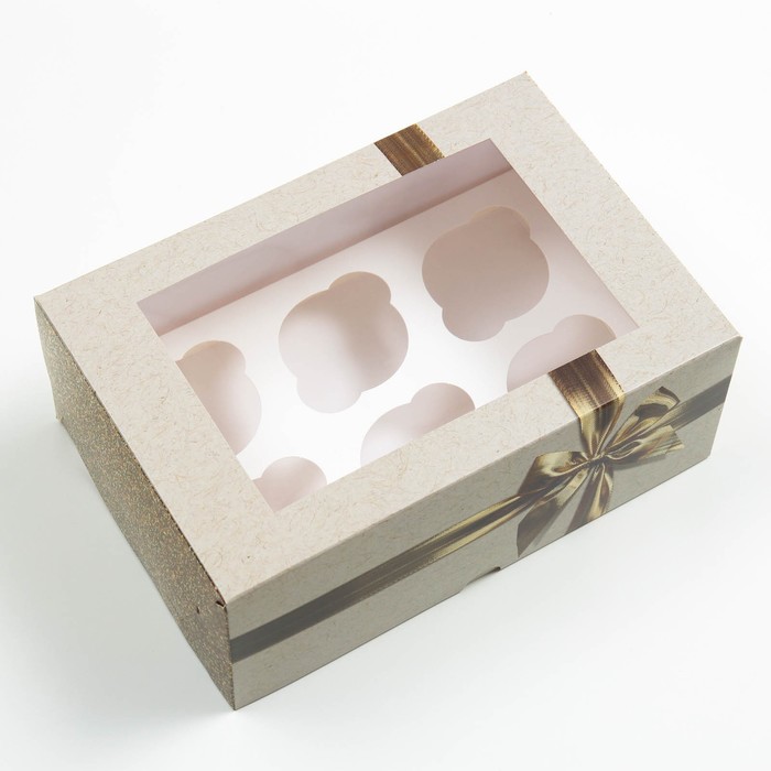 Упаковка на 6 капкейков "Золотой бант", 25 х 17 х 10 см — Характеристики