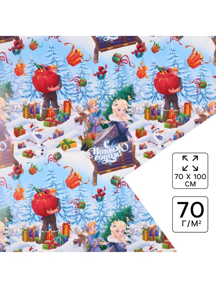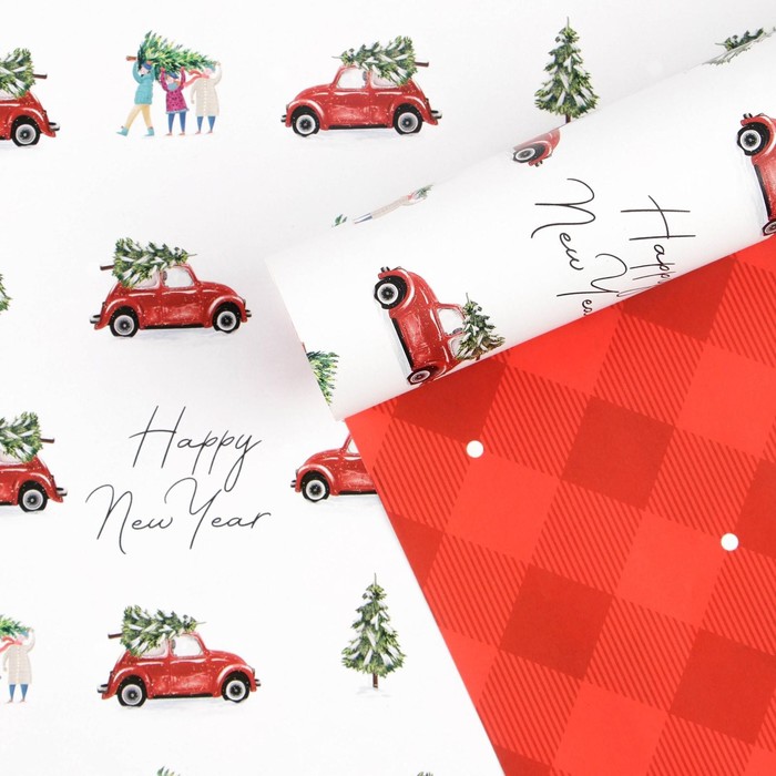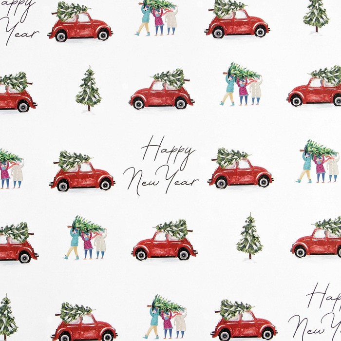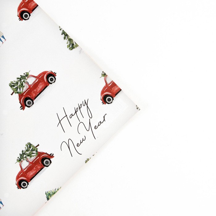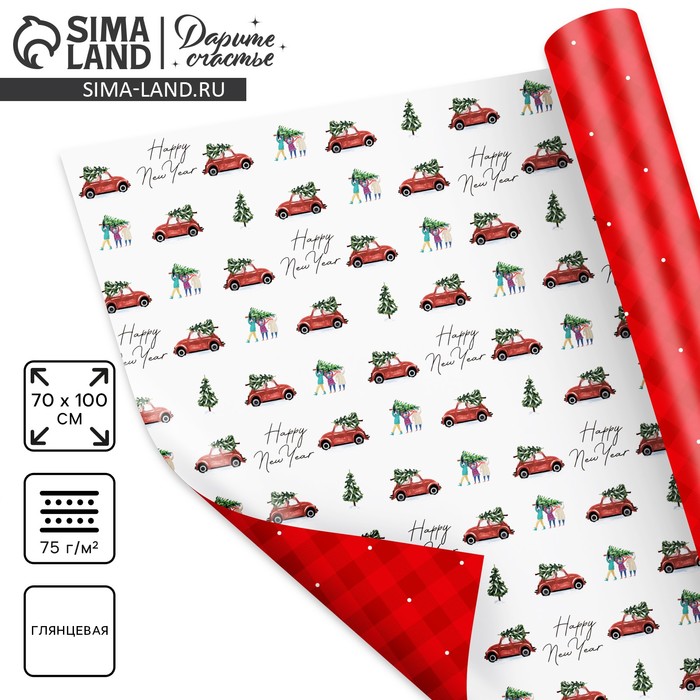 Упаковочная бумага глянцевая двухсторонняя «Новогодние машины», 70 х 100 см — Характеристики
