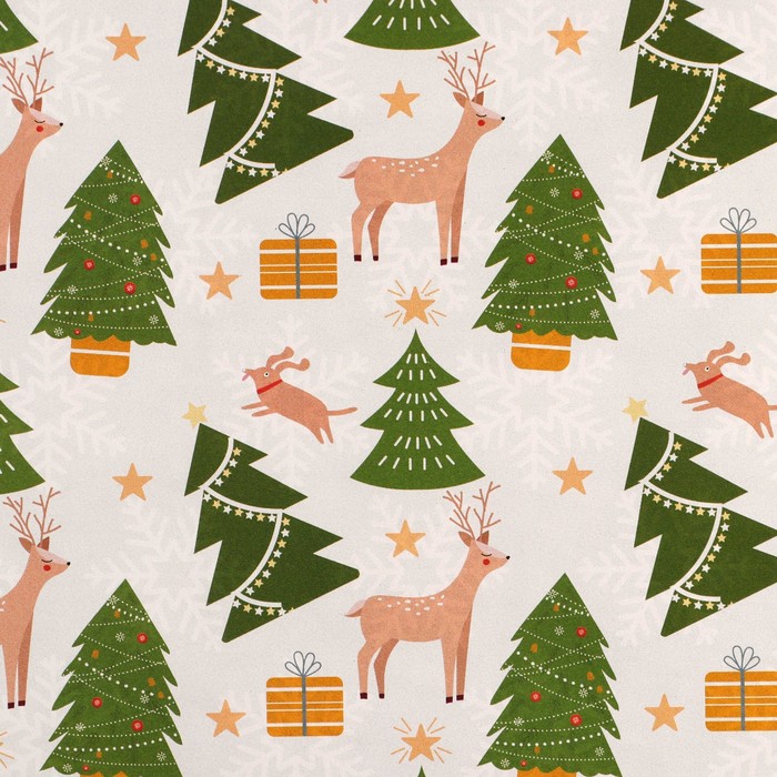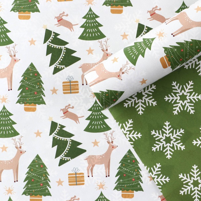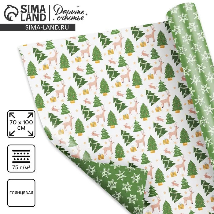 Упаковочная бумага глянцевая двухсторонняя «Новогодний лес», 70 х 100 см — Характеристики
