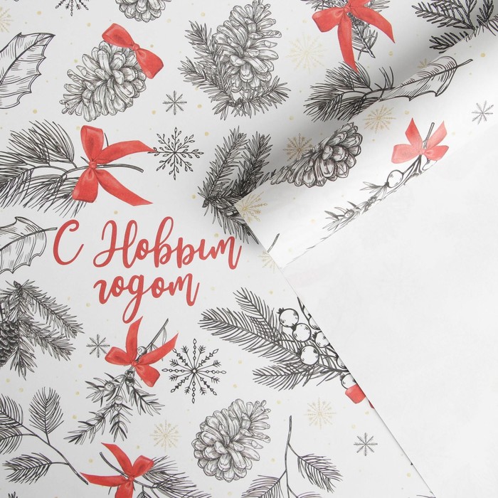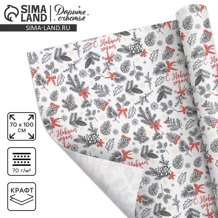 Упаковочная бумага крафтовая «С Новым Годом», 70×100 см — Характеристики