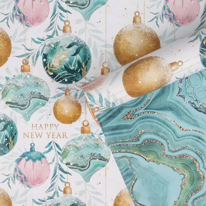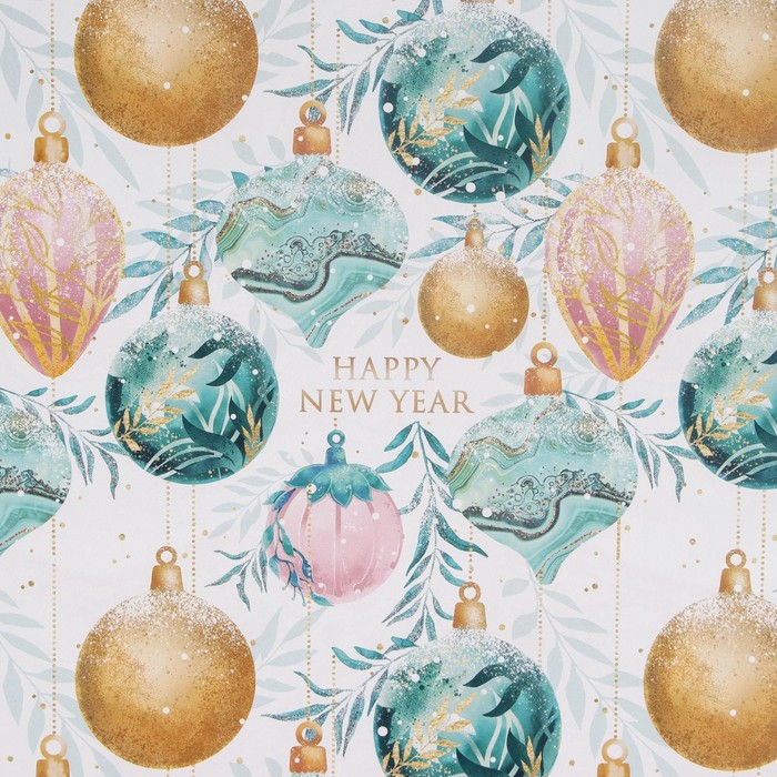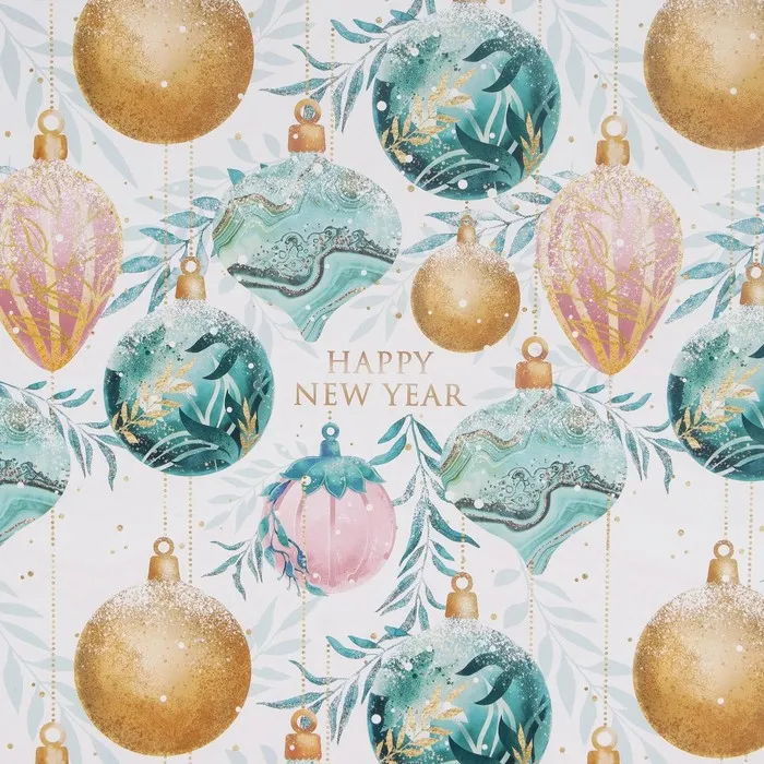 Упаковочная бумага на новый год глянцевая двухсторонняя «Ёлочные шары», 70 х 100 см — Характеристики