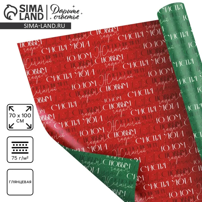 Упаковочная бумага на Новый год глянцевая двухсторонняя «С Новым годом», 70 х 100 см — Характеристики