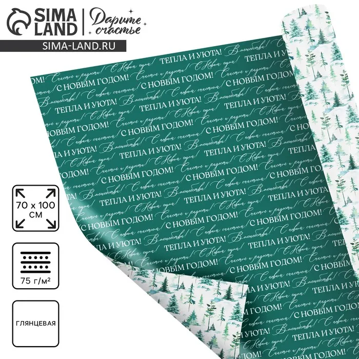 Бумага упаковочная новогодняя глянцевая «Новогодний лес», 68×100 см