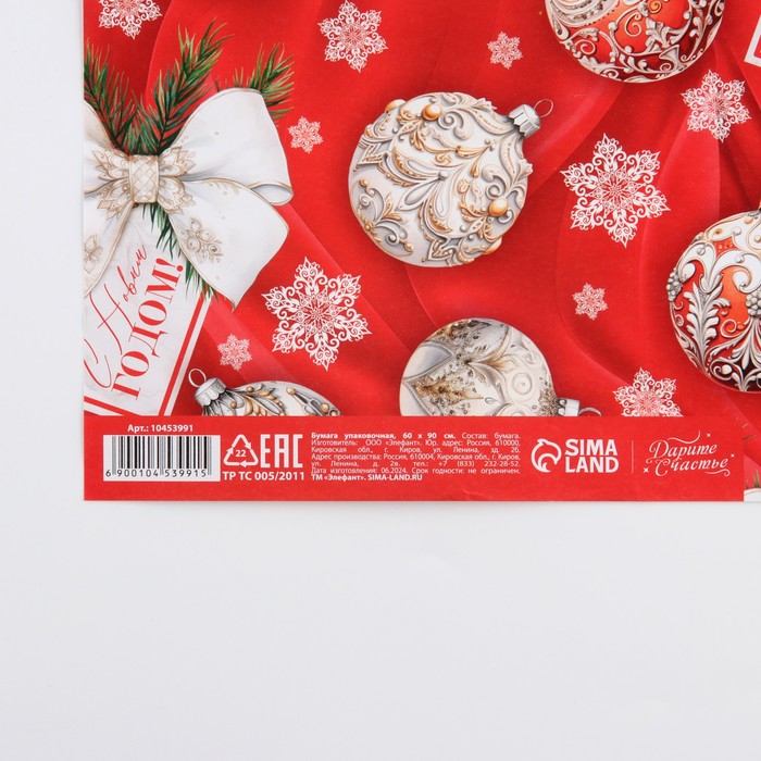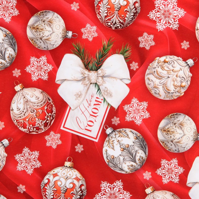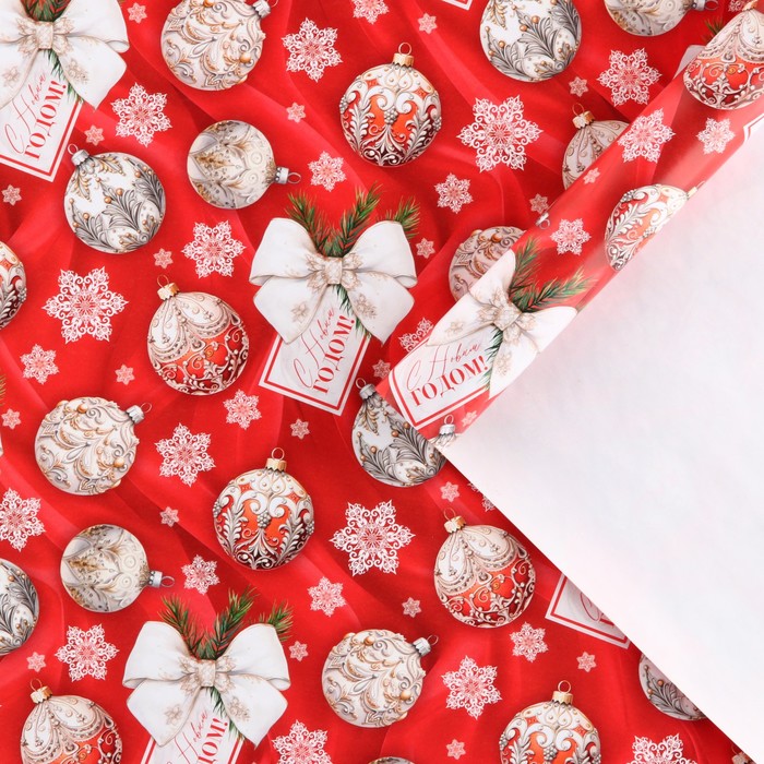 Упаковочная бумага на Новый год глянцевая «Новогодние игрушки», 60 х 90 см — Характеристики