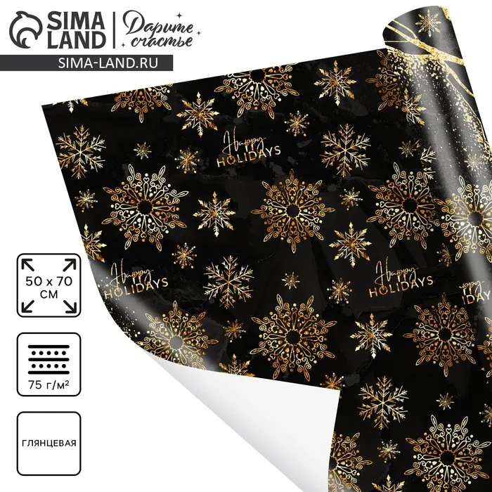 Упаковочная бумага на новый год Happy holidays, 50 х 70 см, глянцевая — Характеристики