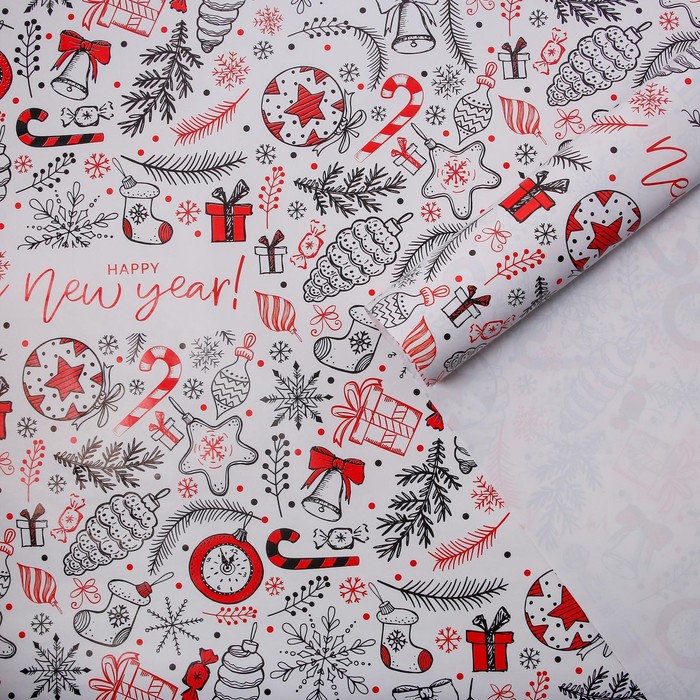 Упаковочная бумага на Новый год Happy new year, 70 х 100 см, глянцевая
