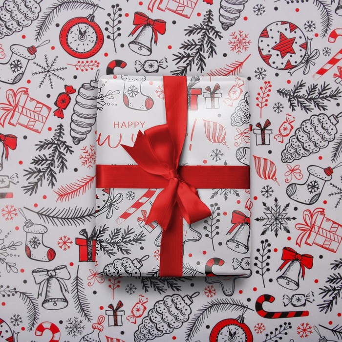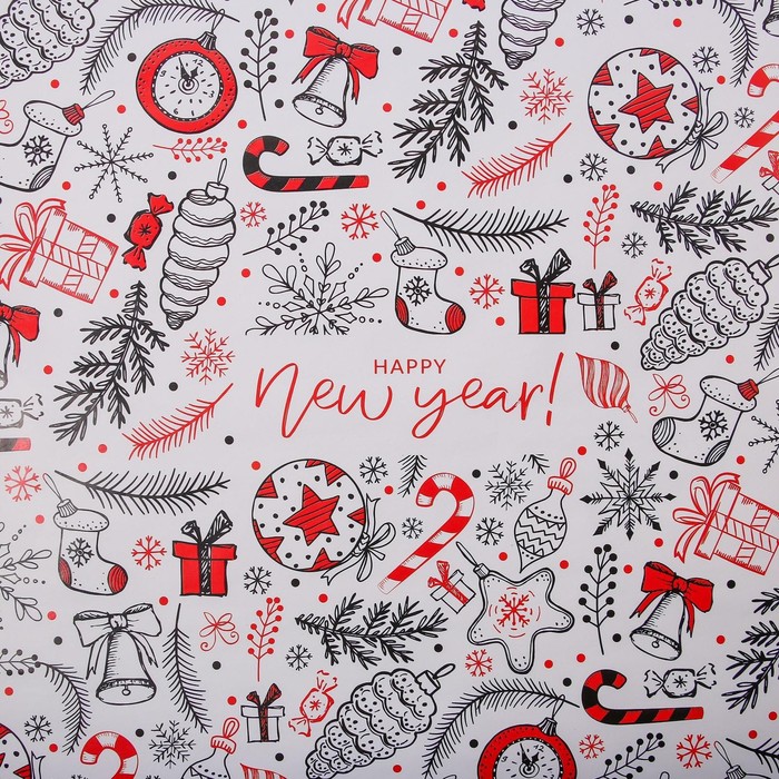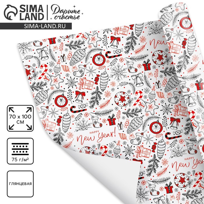 Упаковочная бумага на Новый год Happy new year, 70 х 100 см, глянцевая — Характеристики