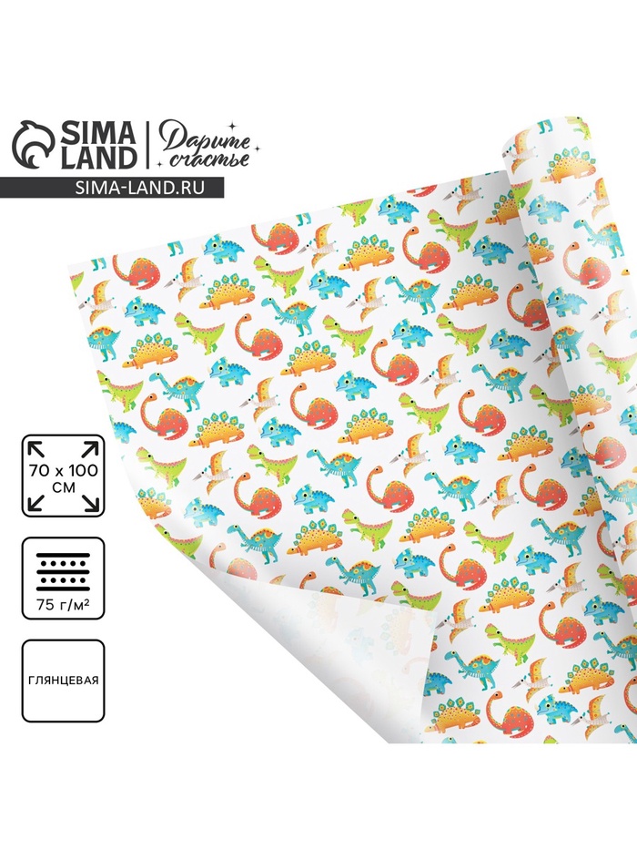 Бумага упаковочная глянцевая «Динозаврики», 70 х 100 см