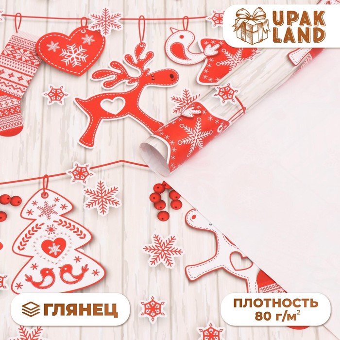 Бумага упаковочная глянцевая «Рождественская гирлянда», 70×100 см,1 лист