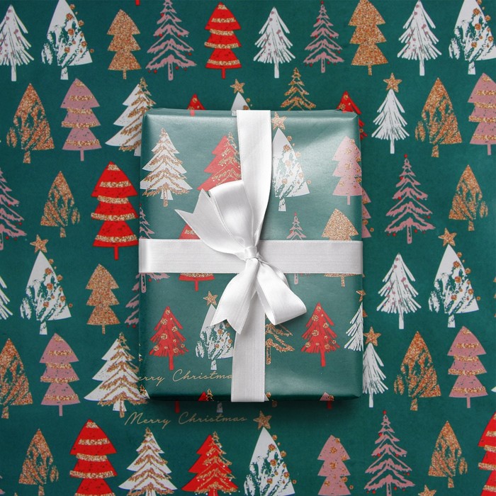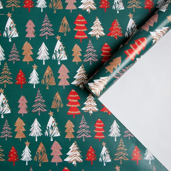 Упаковочная бумага на новый год «Ёлочки», 70 х 100 см, глянцевая — Характеристики
