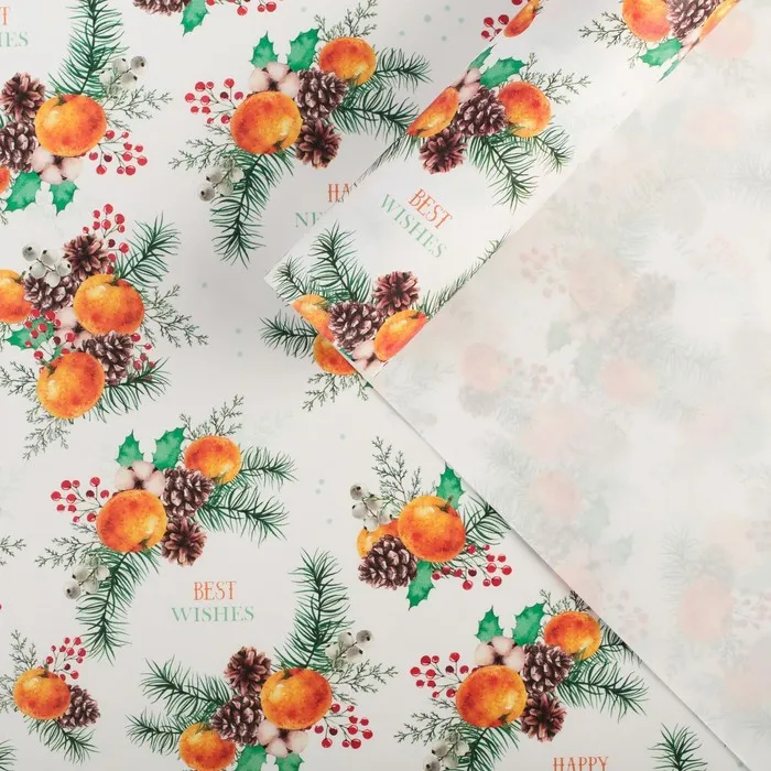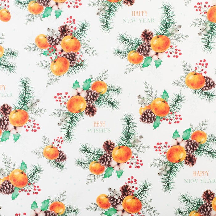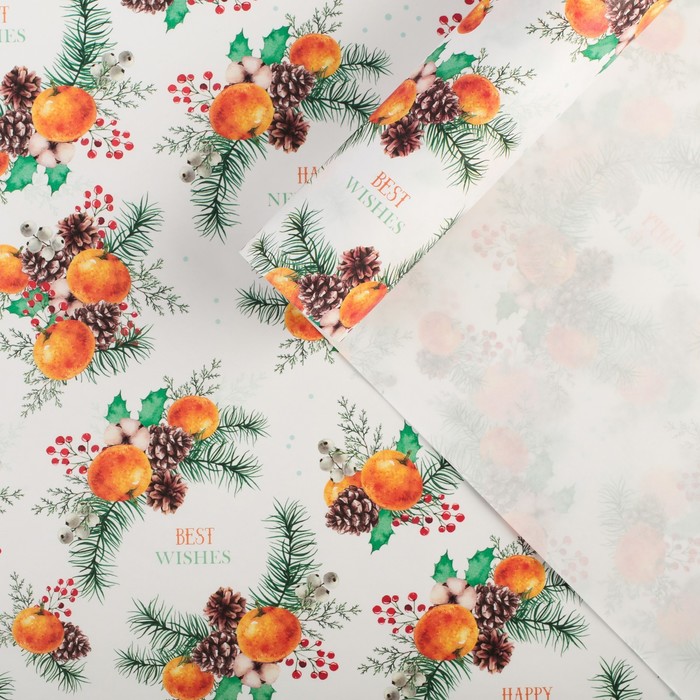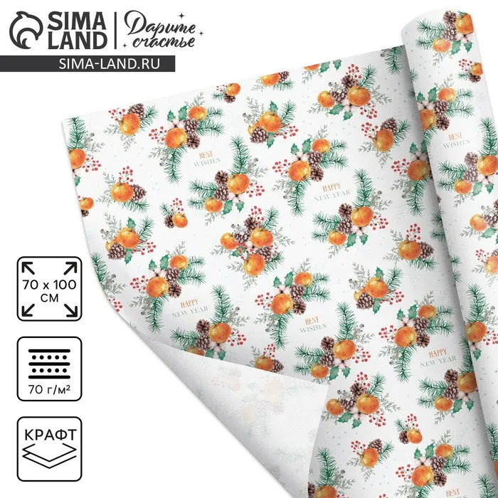 Упаковочная бумага на новый год крафтовая «Мандариновое настроение», 70 х 100 см — Характеристики