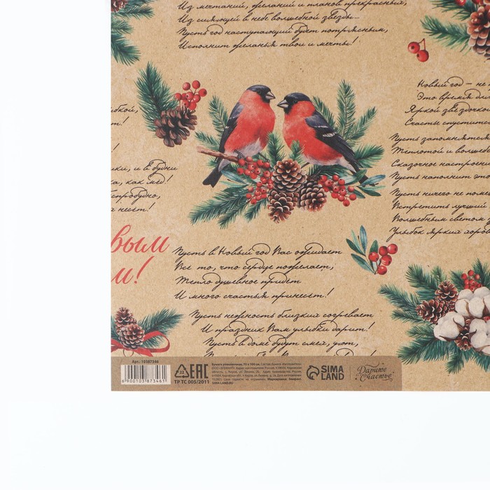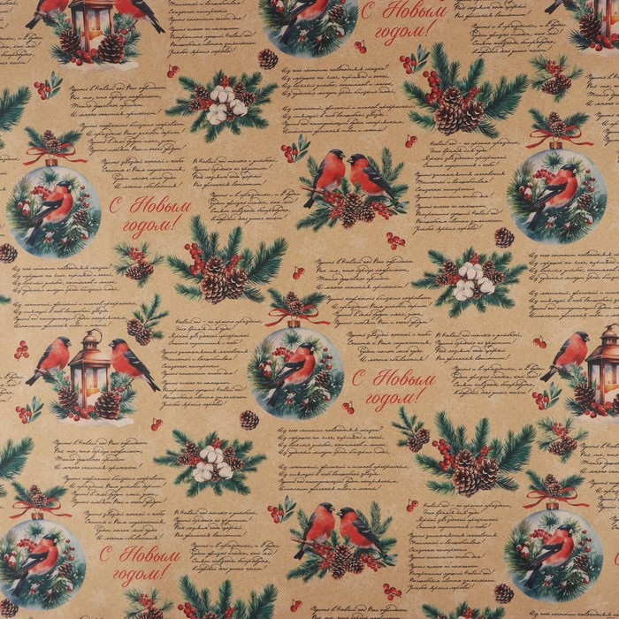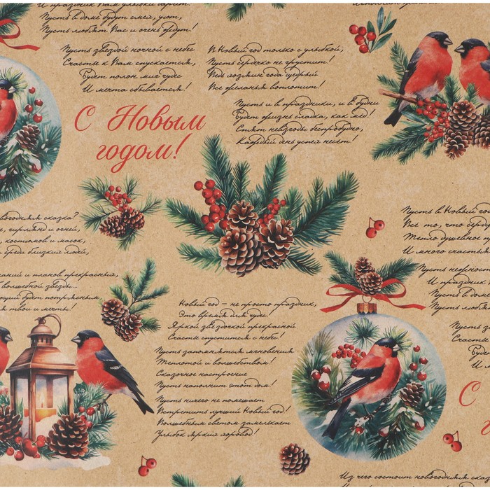 Упаковочная бумага на Новый год крафтовая «Новогодняя газета» , 70 х 100 см — Характеристики