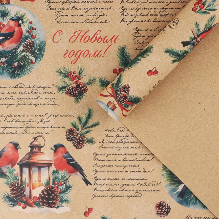 Упаковочная бумага на Новый год крафтовая «Новогодняя газета» , 70 х 100 см — Характеристики