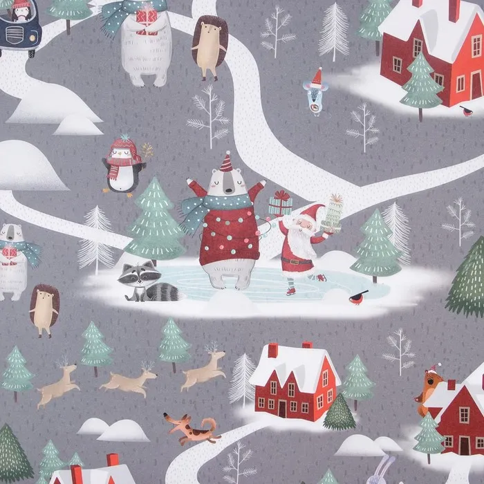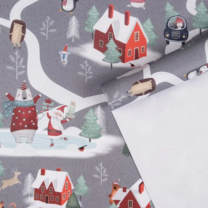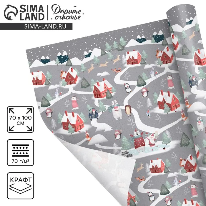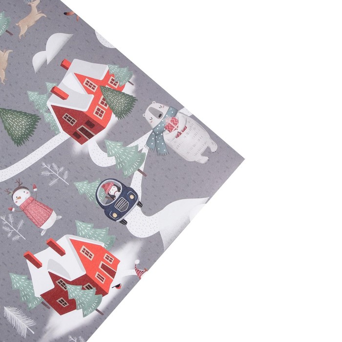 Упаковочная бумага на новый год крафтовая «Зимние забавы», 70 х 100 см — Характеристики