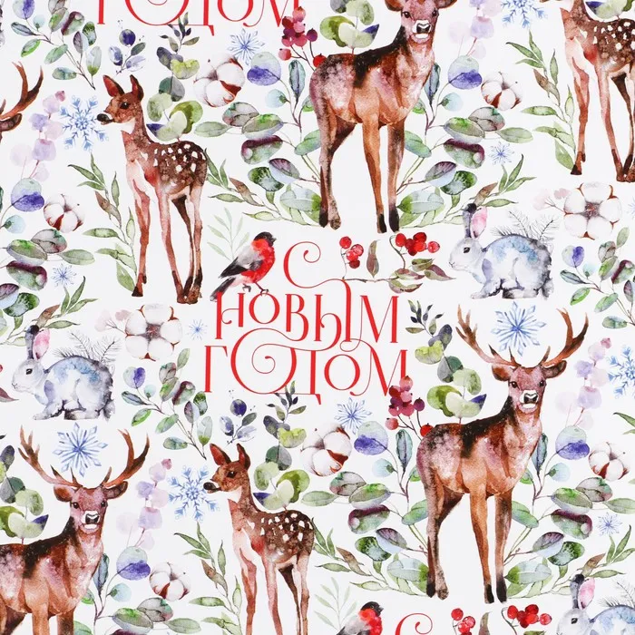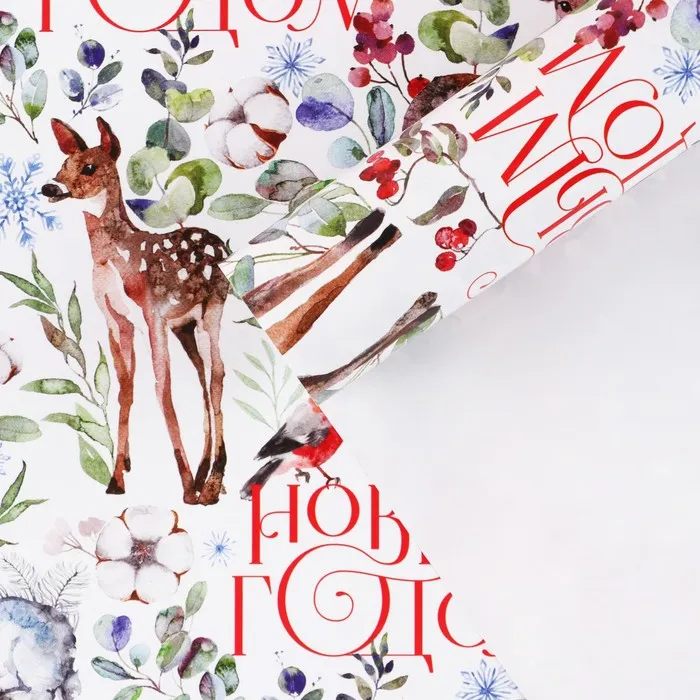 Упаковочная бумага на новый год «Лесная сказка», 70 х 100 см, глянцевая — Характеристики