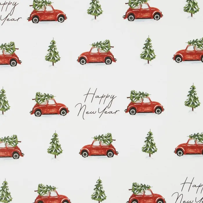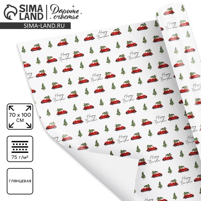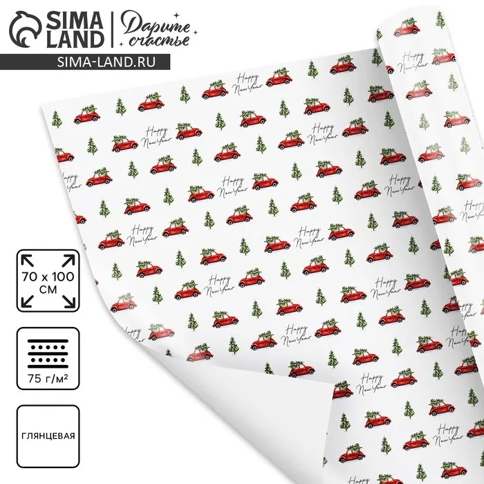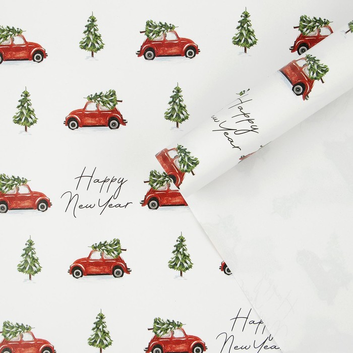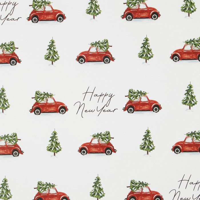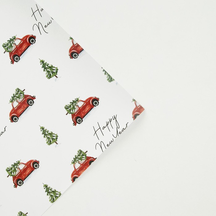 Упаковочная бумага на Новый год «Машина с ёлкой», 70 х 100 см, глянцевая — Характеристики