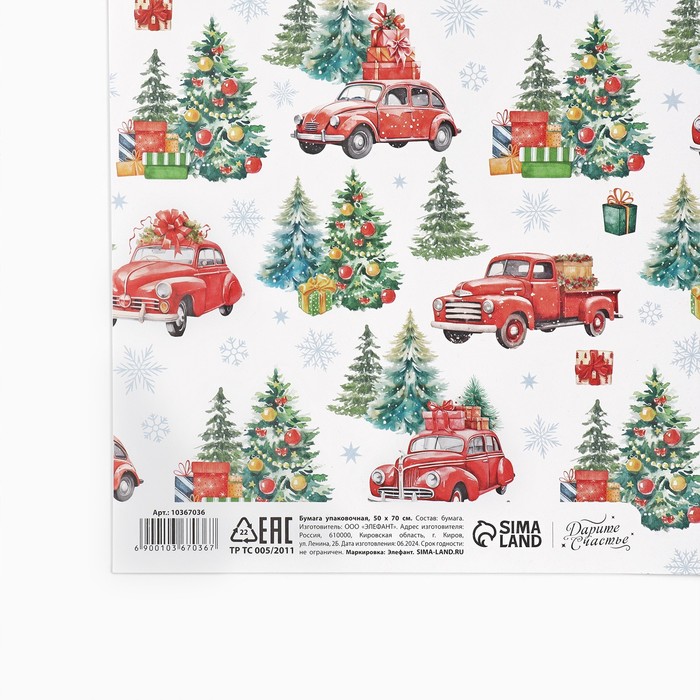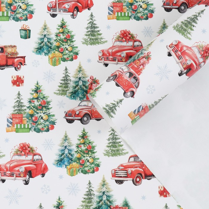 Упаковочная бумага на новый год «Машинка с подарками», 50 х 70 см, глянцевая