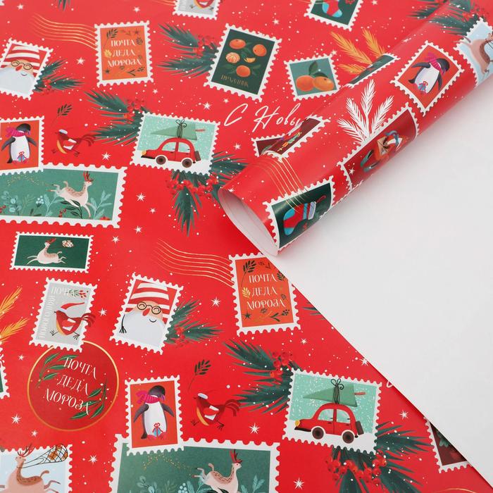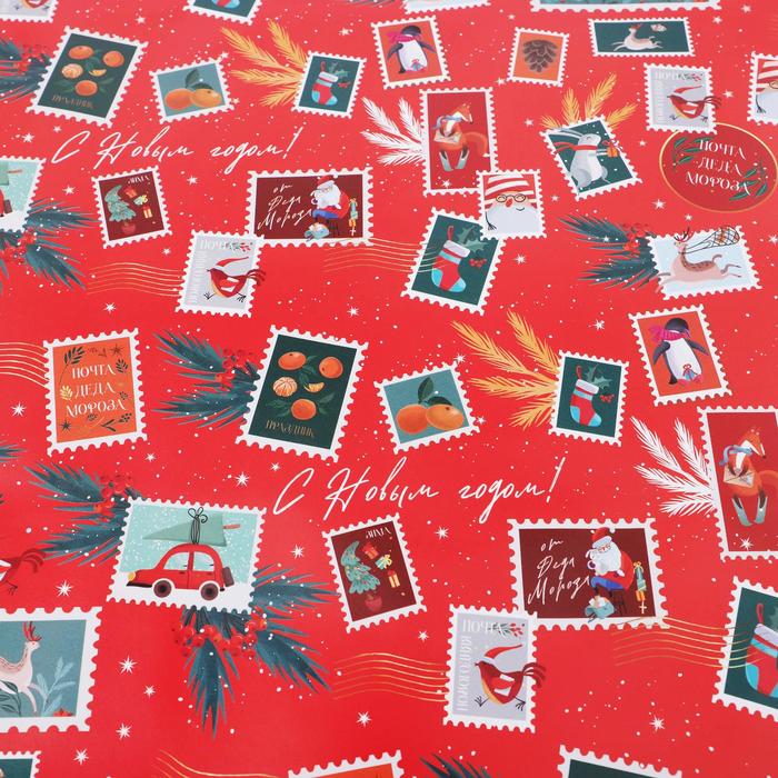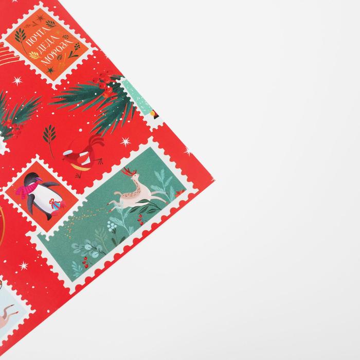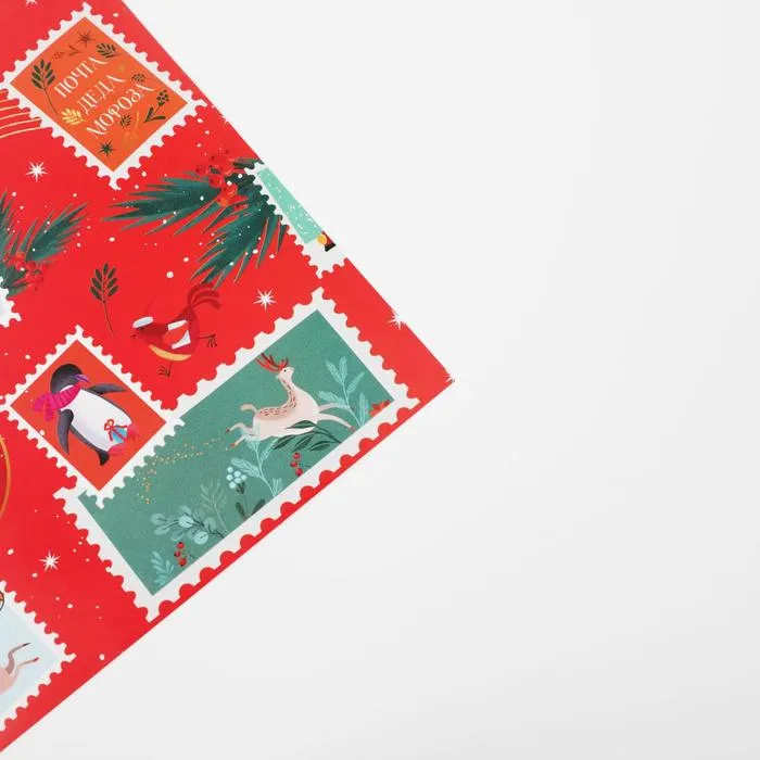 Упаковочная бумага на новый год «Новогодние марки», 70 х 100 см, глянцевая — Характеристики