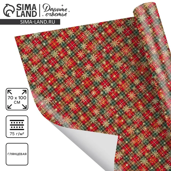 Упаковочная бумага на новый год «Новогодний принт», 70 х 100 см, глянцевая — Характеристики