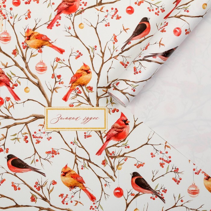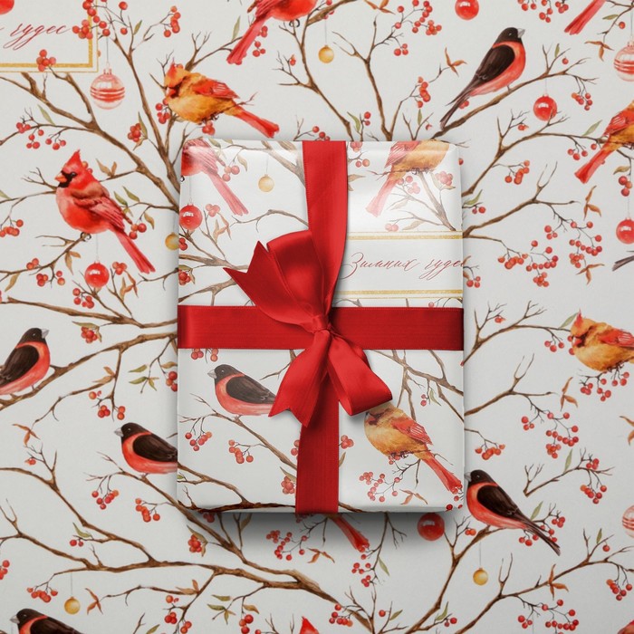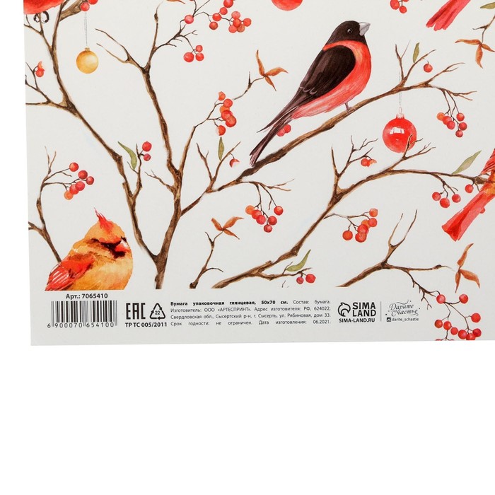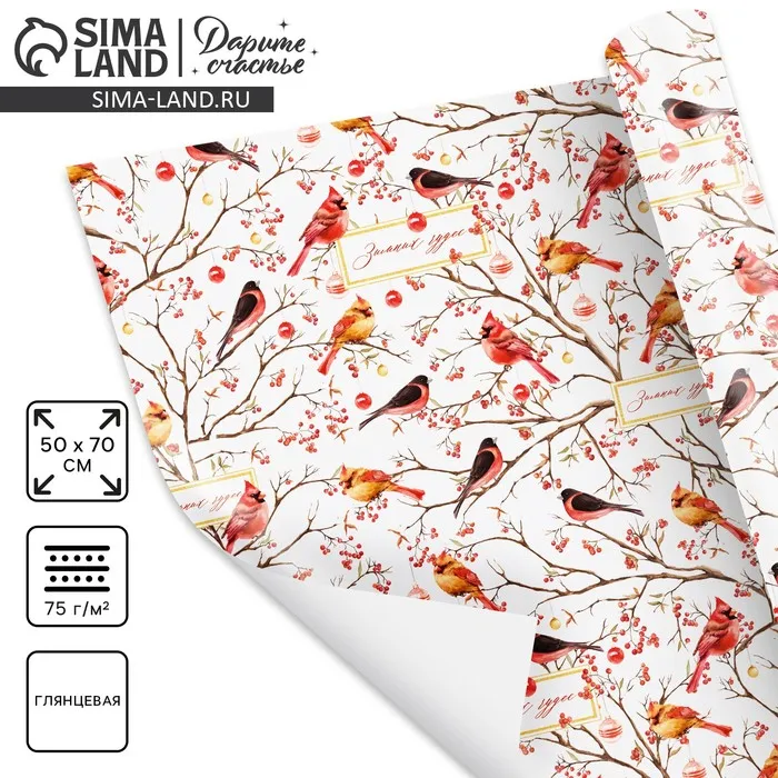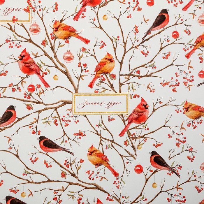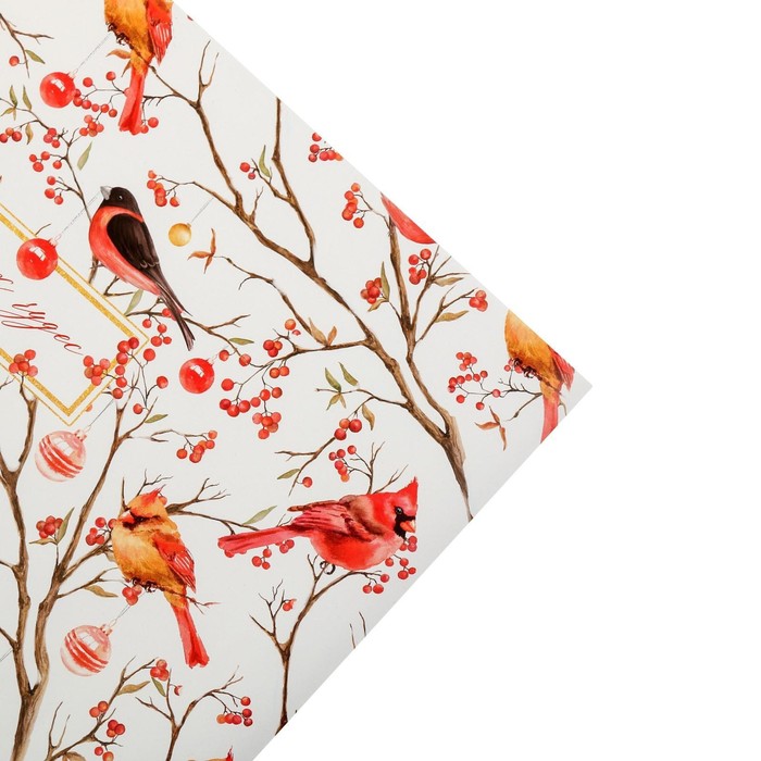 Упаковочная бумага на новый год «Птицы на ветвях», 50 х 70 см, глянцевая — Характеристики