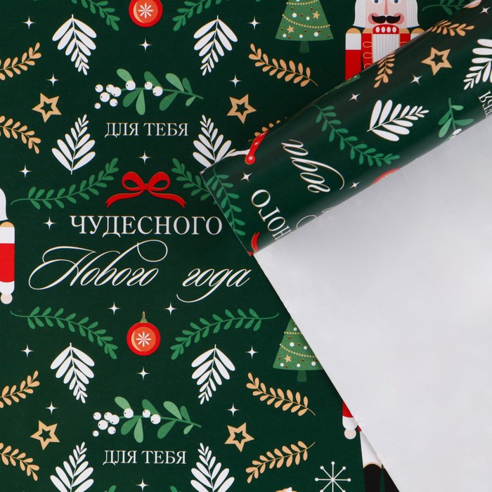 Упаковочная бумага на Новый год «Щелкунчик», 70 х 100 см, глянцевая