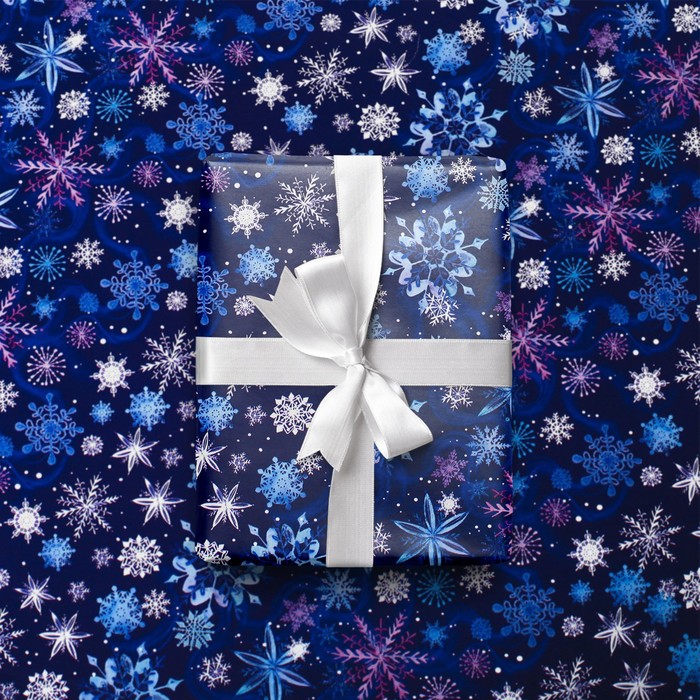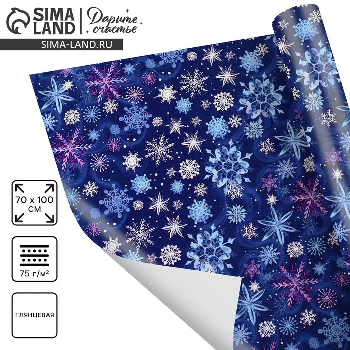 Упаковочная бумага на новый год «Синие снежинки», 70 х 100 см, глянцевая — Характеристики