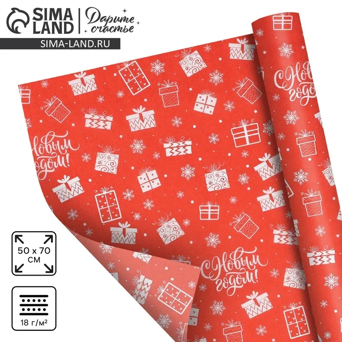 Упаковочная бумага на новый год тишью «Подарок», 50 х 70 см — Характеристики