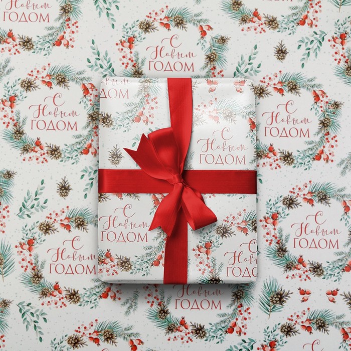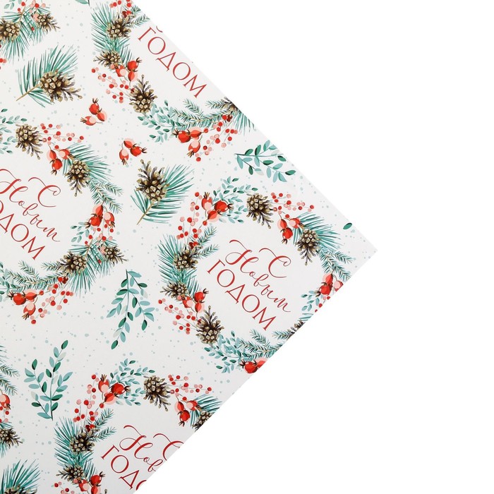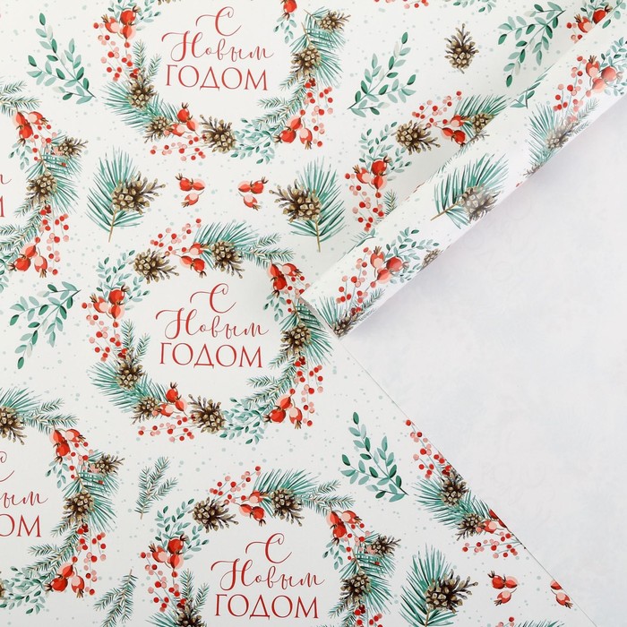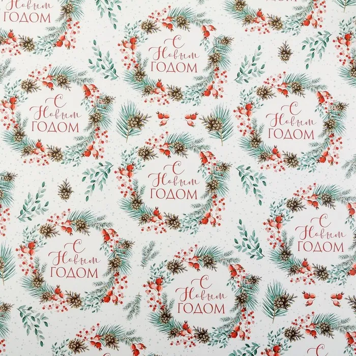Упаковочная бумага на новый год «Венки», 50 х 70 см, глянцевая