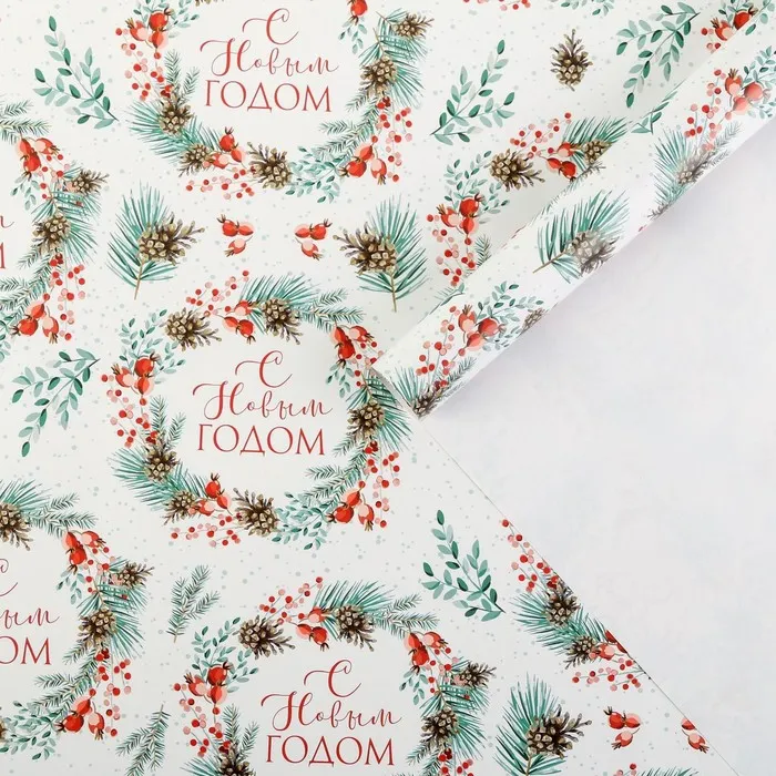 Упаковочная бумага на новый год «Венки», 50 х 70 см, глянцевая — Характеристики