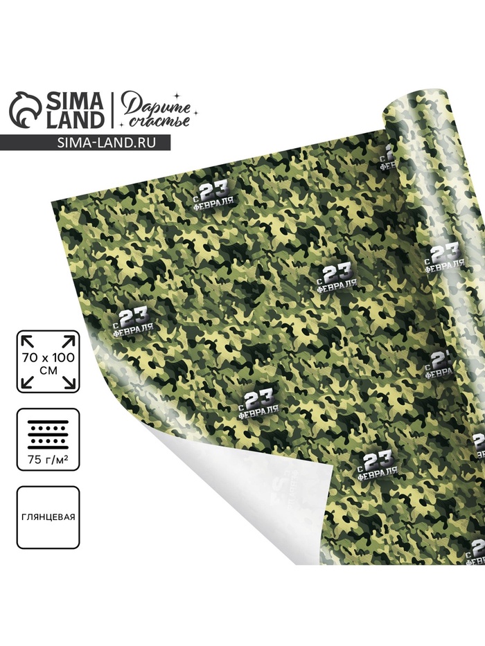Бумага упаковочная глянец «Камуфляж», 23 февраля, 100 х 70 см