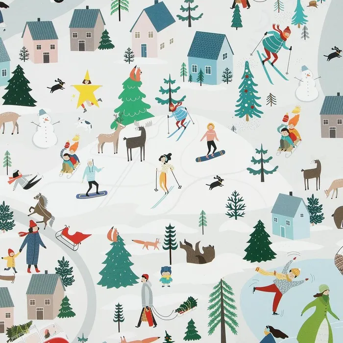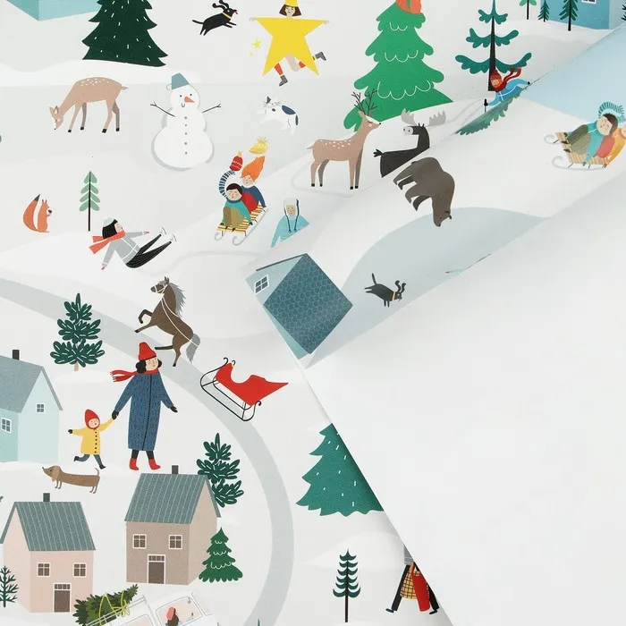 Упаковочная бумага на Новый год «Зимний город», 70 х 100 см, глянцевая — Характеристики