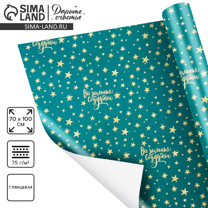 Упаковочная бумага на Новый год «Звёзды», 70 х 100 см, глянцевая — Характеристики