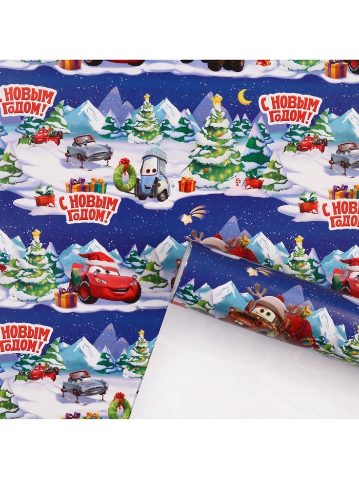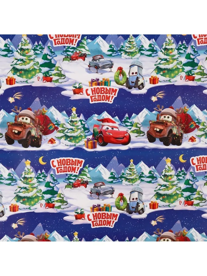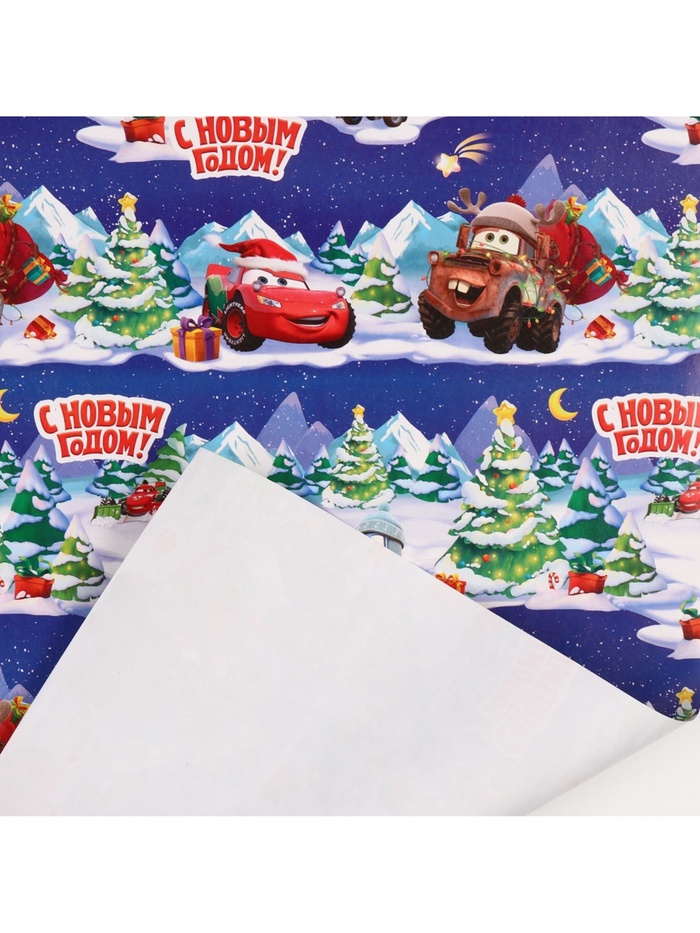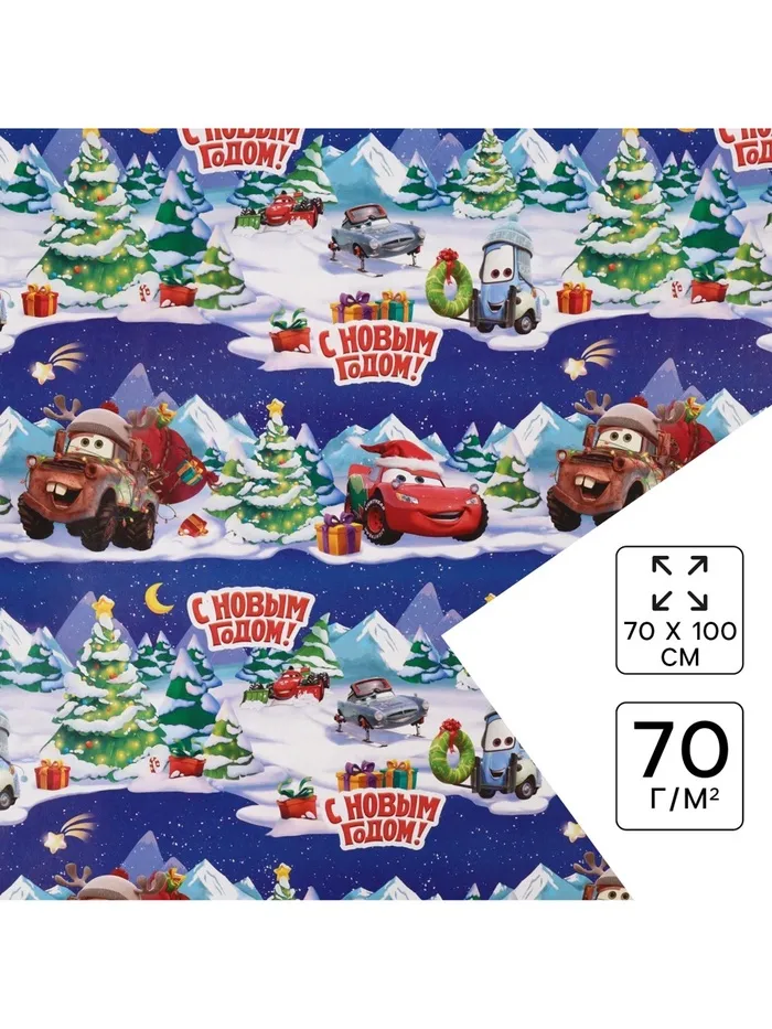 Упаковочная бумага новогодняя, 70 х 100 см, Тачки — Характеристики