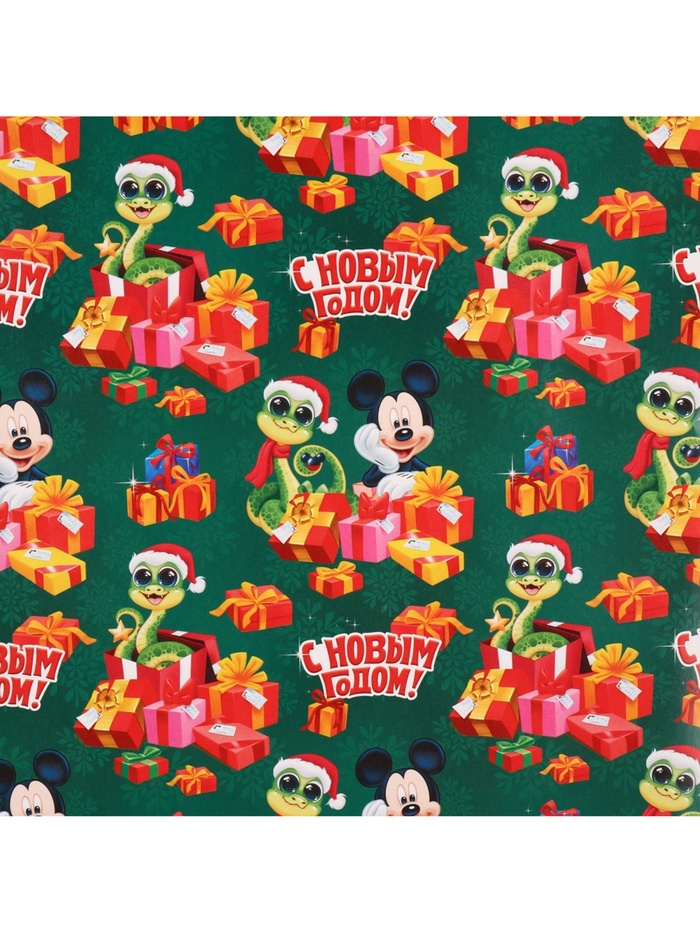 Упаковочная бумага новогодняя, 70×100 см, Микки Маус