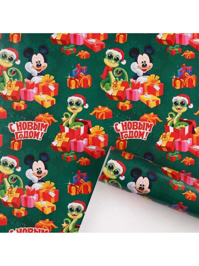 Упаковочная бумага новогодняя, 70×100 см, Микки Маус — Характеристики