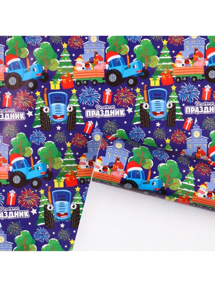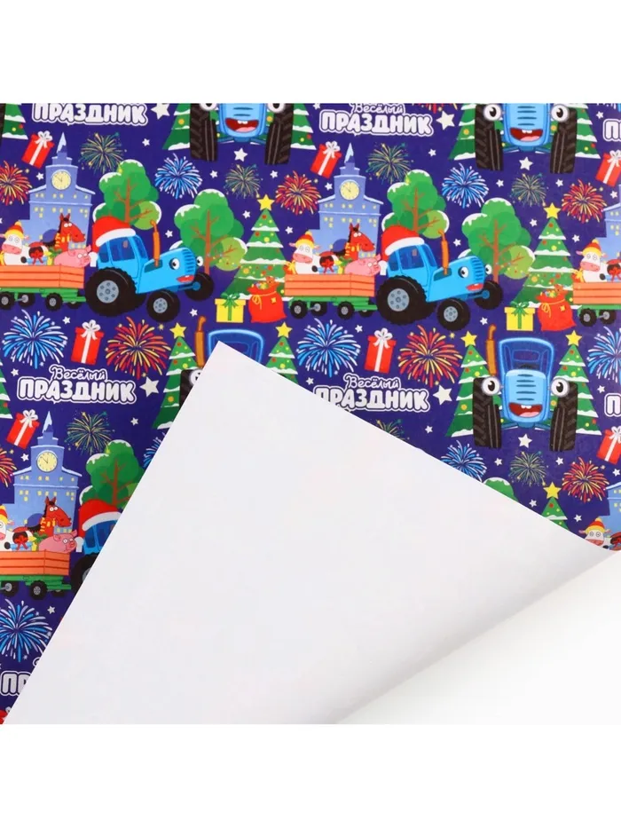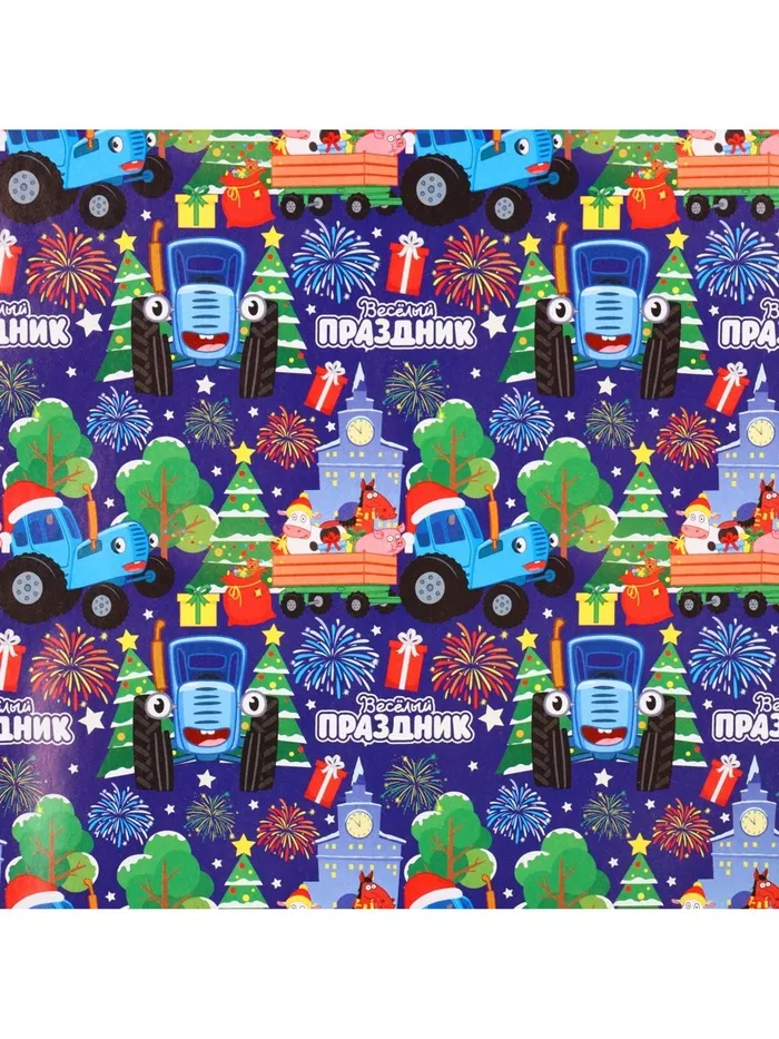 Упаковочная бумага новогодняя «Весёлый праздник», 70 х 100 см, Синий трактор — Характеристики