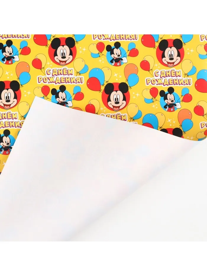Упаковочная бумага «С днём рождения», 70х100 см, Микки Маус — Характеристики
