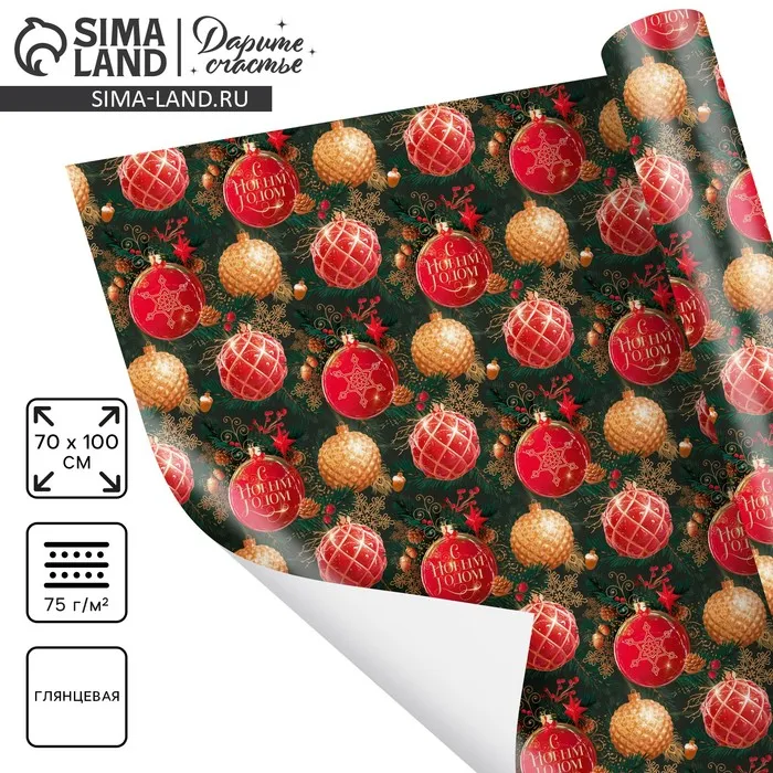 Упаковочная бумага «С Новым годом», 70 х 100 см, глянцевая — Характеристики