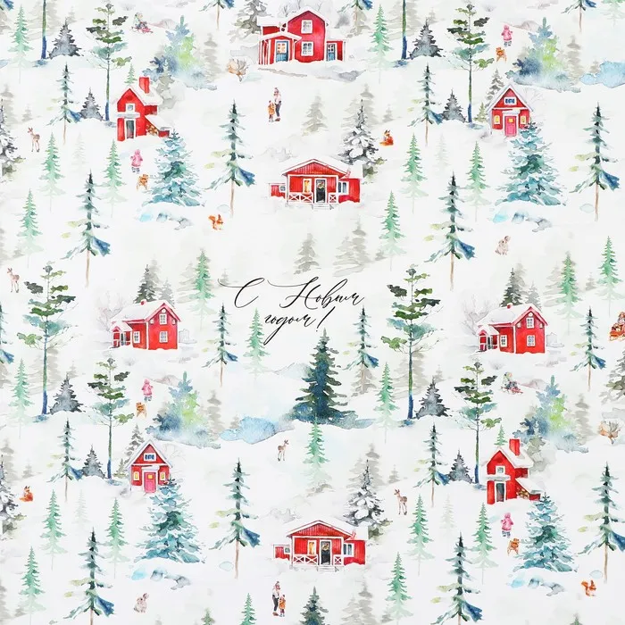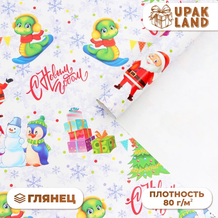 Бумага упаковочная новогодняя «Змейка с друзьями Символ года», глянец, 80 г/м² , 70×100 см