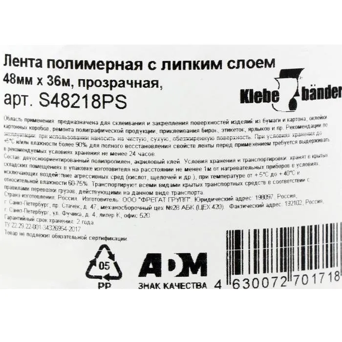 Упаковочная лента Klebebänder, 48 мм*36 м, прозрачная — Характеристики