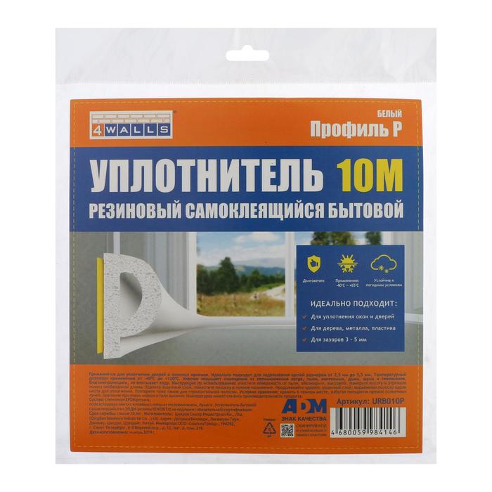 Уплотнитель для окон, профиль P, на клейкой основе, белый, в упаковке 10 м
