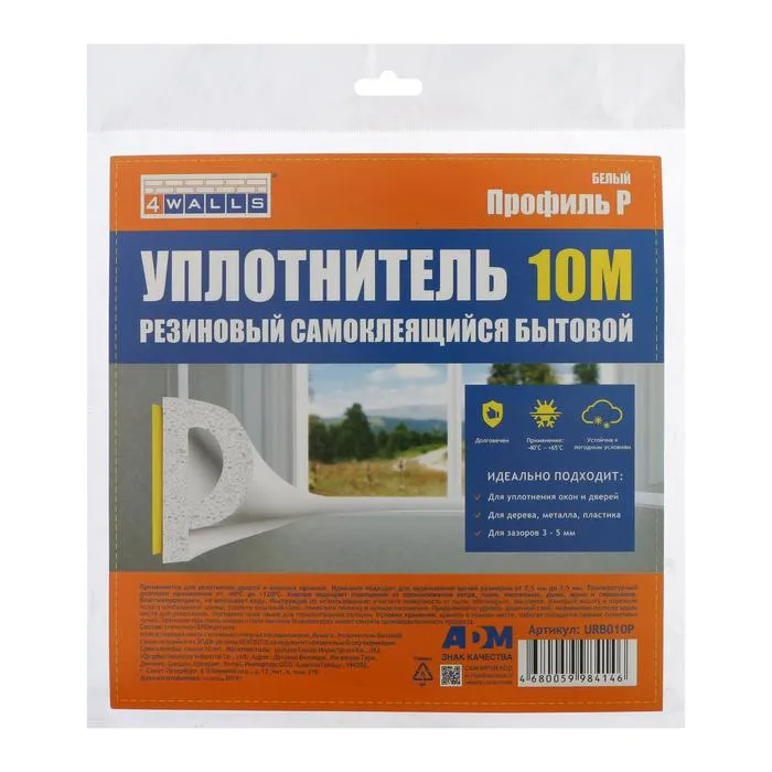 Уплотнитель для окон, профиль P, на клейкой основе, белый, в упаковке 10 м — Характеристики