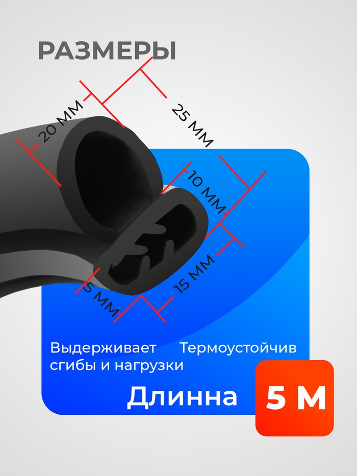 Уплотнитель двери в автомобиль, О-образный, с металлическим сердечником и длиной 5 метров, чёрного цвета, представляет собой высококачественный элемент, предназначенный для улучшения герметичности и звукоизоляции дверей вашего автомобиля. Он имеет прочную конструкцию с металлическим сердечником, который обеспечивает надёжность и долговечность изделия.