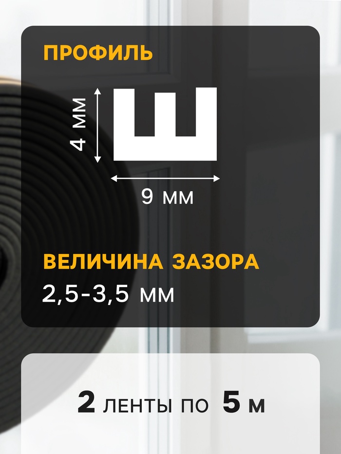 Резиновый уплотнитель профиля P предназначен для уплотнения щелей размером 2,5–3,5 мм.