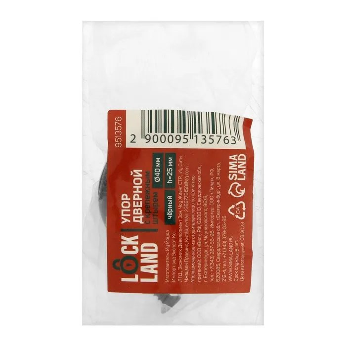 Упор дверной LOCKLAND, с крепежным штырем, d=40 мм, h=25 мм, цвет черный — Характеристики